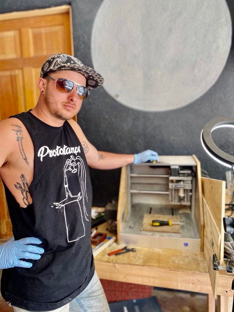 Sam Meketon is the founder and glass artist behind Protostamps by Samwich Glassworks. Sam takes pride in his craft and ensures that the fabrication has become a quintessential part of his process and has helped to streamline the creation of his art. Whether it is building equipment or fabricating smaller projects to make his shop run more efficiently, Sam has always strived for a high level of craft.